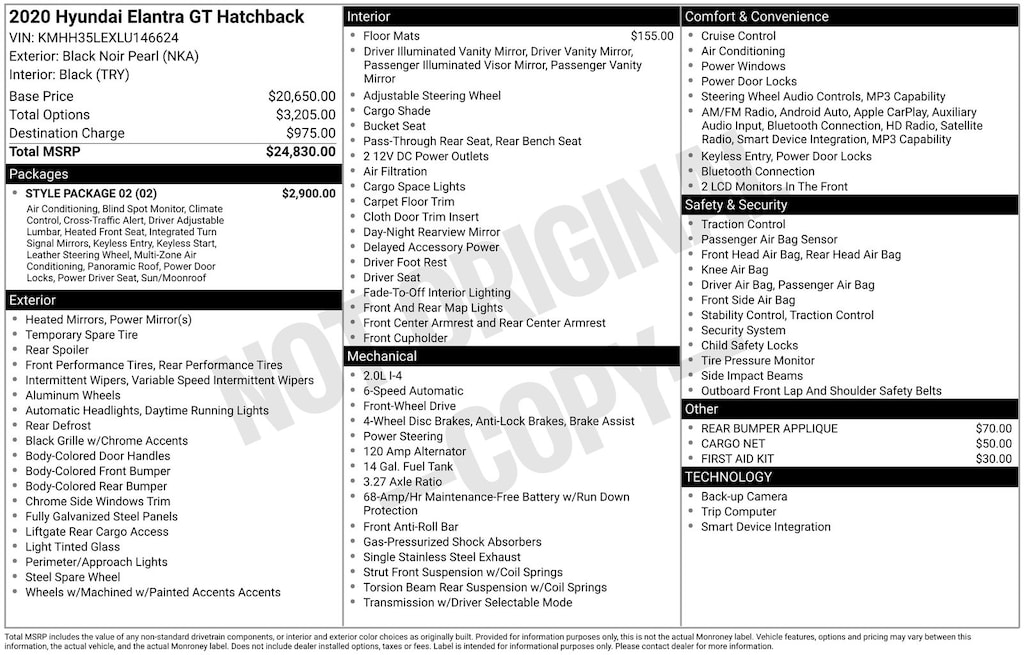 2020 Hyundai Elantra GT Base Hatchback DOHC