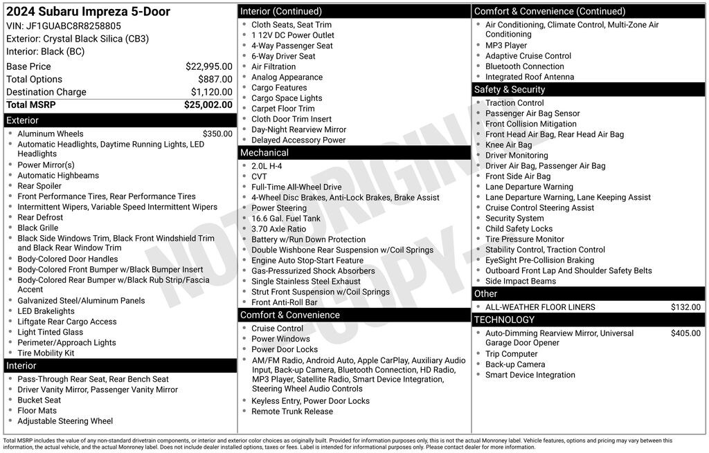 Although every reasonable effort has been made to ensure the accuracy of the information contained on this site, absolute accuracy cannot be guaranteed. The Dealership is not responsible for any unintended typographical, pricing, product specification, advertising, shipping or other errors. Advertised prices and availability are subject to change without notice. All vehicles are subject to prior sale. Vehicle sale prices include a factory rebate, if applicable, and are valid on cash or finance purchases only by an individual for their personal use. The sale price does not apply to a lease. All pricing and advertised prices for any/all vehicles offered for sale does not include dealer installed accessories: Karr Security & Replacement $1,495, Xylon Paint & Fabric Protection $995, AGWS Compass Etch $995, and Old Republic Windshield Replacement & Repair $1,495. The factory rebate(s) may not be available if you elect to take advantage of a special alternative APR or special lease program. Some factory rebates are California resident specific and may vary for residents of other states. NO sales to Dealers, brokers, or exporters. For out of state purchases, customer must be present to purchase. If shipping is required, Dealership must facilitate - no exceptions. Please contact us for special multi-vehicle or fleet pricing. Prices plus government fees and taxes, any finance charges, any dealer document processing charge, any electronic filing charge, and any emission testing charge.